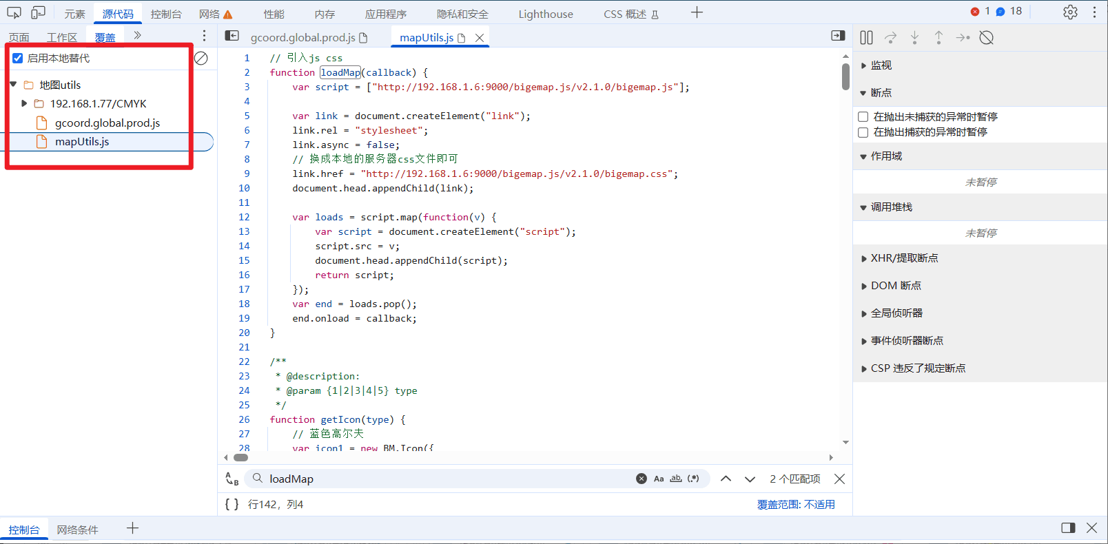 - 开发者工具中 ctrl + p 打开对应的地图 js