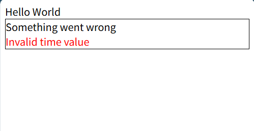 tsximport { useEffect } from 'react' import { ErrorBoundary, type FallbackProps } from 'react-error-boundary' function ExampleApplication() { return ( <> {/* expect an error */} <input type="date" value={new Date('xxxx').toISOString()} /> </> ) } function ErrorFallback(fallbackProps: FallbackProps) { useEffect(() => { console.log('错误上报', fallbackProps.error) }, [fallbackProps.error]) return ( <> <div style={{ border: '1px solid #000' }}> <div>Something went wrong</div> <div style={{ color: 'red' }}>{fallbackProps.error?.message}</div> </div> </> ) } function App() { return ( <> <div>Hello World</div> <ErrorBoundary FallbackComponent={ErrorFallback}> <ExampleApplication /> </ErrorBoundary> </> ) } export default App